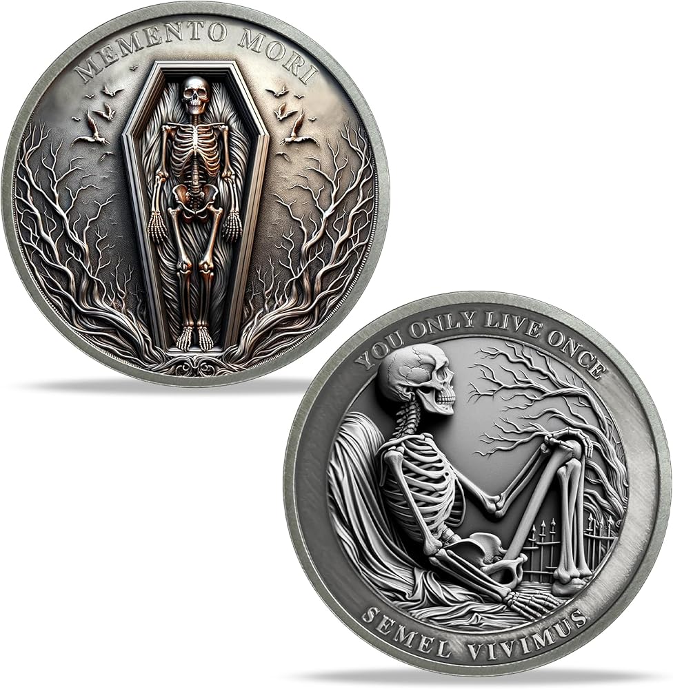 INTRICATE ENGRAVING: Each memento mori challenge coin showcases sophisticated 3D engraving technology, its elaborate design serving as a poignant representation of life's fleeting nature and the certainty of death. It invites holders to remain grounded in the present and invest in what truly matters
