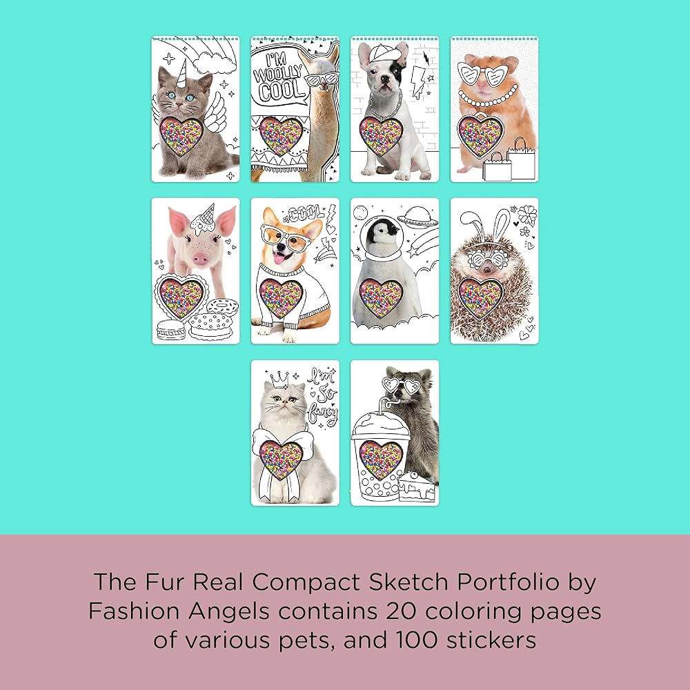 Color the 20 adorbs unicorn anime style animals then complete your design with the included 100 stickers. This portfolio is the perfect size to take along for travel. Book also features a transparent glitter shaker unicorn horn that pops thru half of the coloring pages and cover making this coloring book a forever keeper.