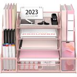 [Large Capacity File Organizer] This desktop organizer has five tiers, each of which has a lot of space. There is also a lot of space on both sides of the file organizer, as well as the pen holders and drawer, a large file container that can hold books, notebooks, a4 paper, and other small items is ideal for organizing files.