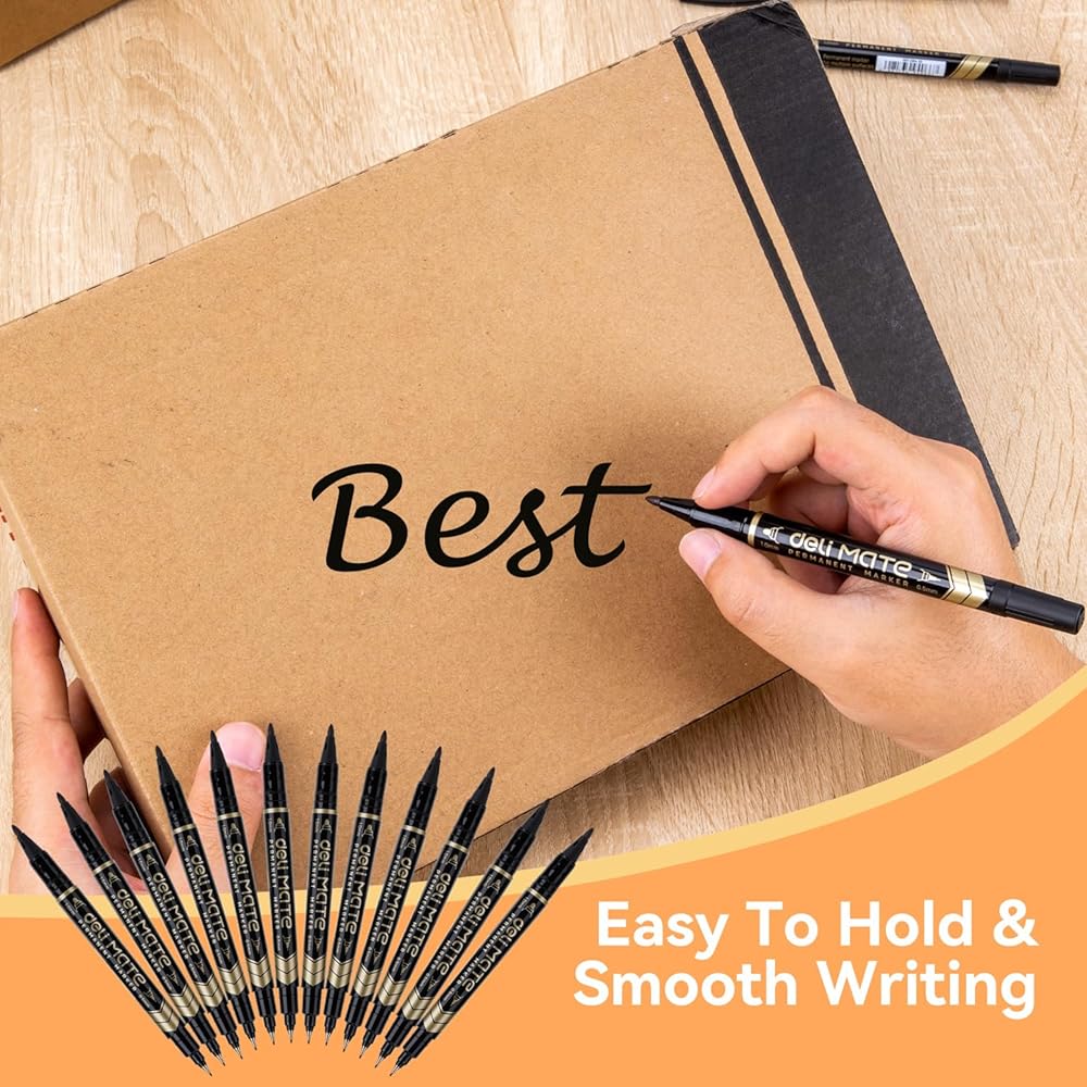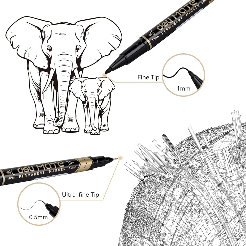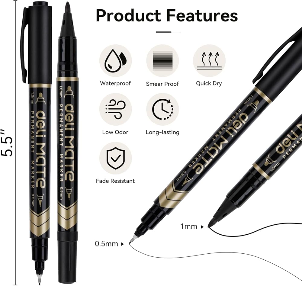 deli Twin Tip Permanent Markers, Fine Point and Ultra Fine Point for Signature and Marking, Black, 12 Count