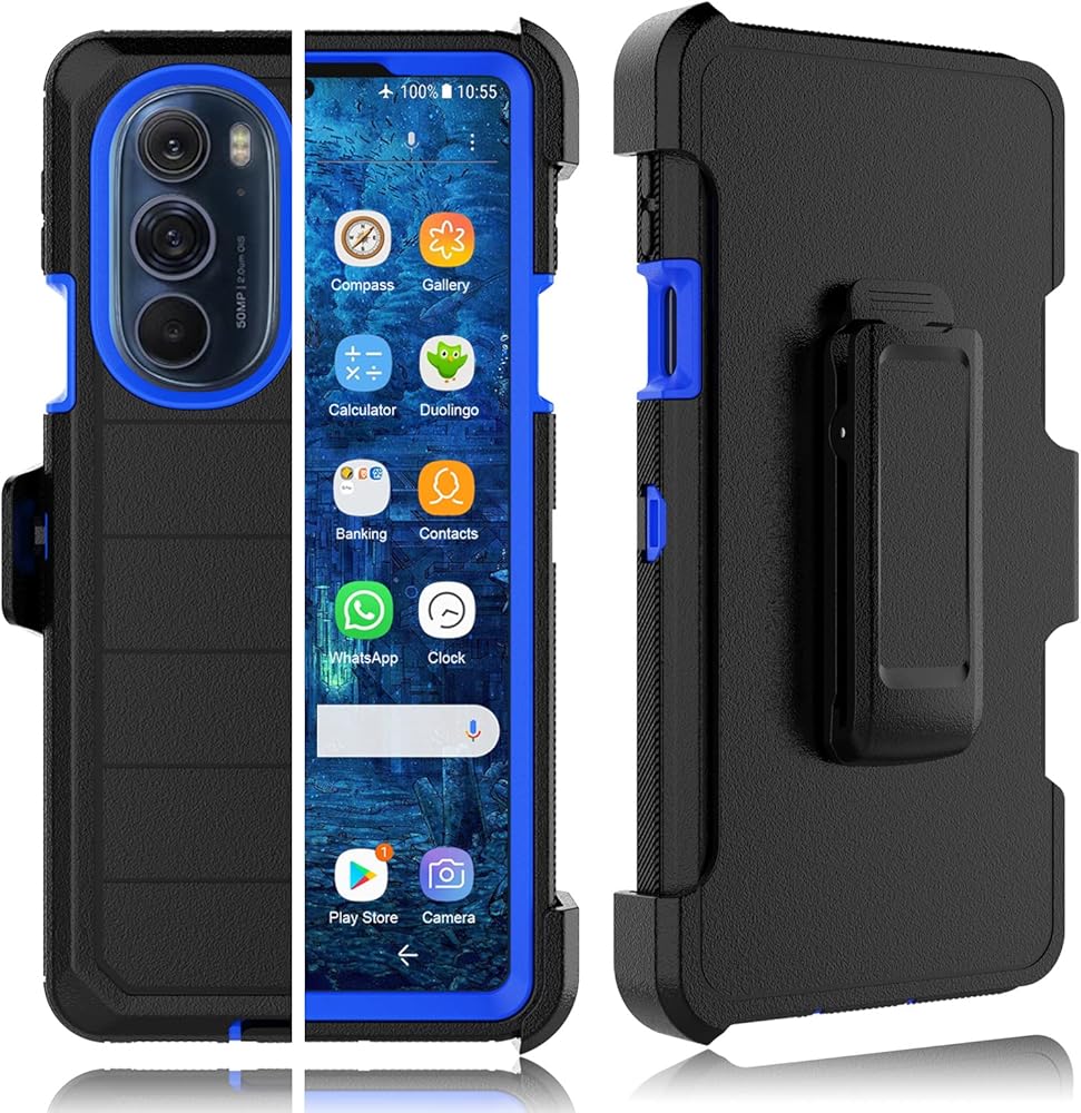 [Easily Access] Compatible with Motorola Motorola Edge+ Plus 5G 2022 Case Holster Belt Clip Combo 3 in 1 Design, shock absorbing 12FT drop tested. Full access to user interface, camera lens, headphone jack, speakerphone, microphone and charging port(with dust plug)
