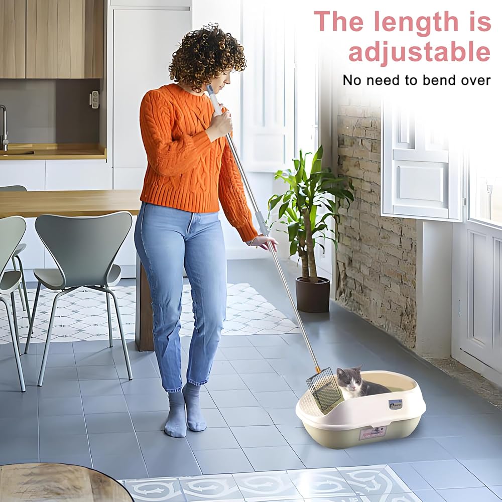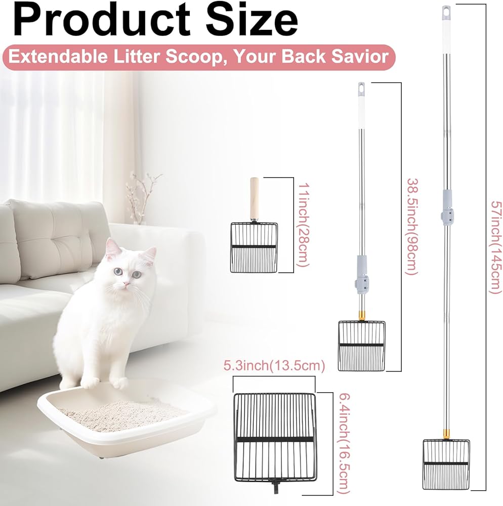 Metal Cat Litter Scoop,38"-57" Scalable Metal Long Handle Kitty Litter Coop Scooper,Metal Litter Scooper with Deep Shovel,Large Durable Cat Litter Shovel