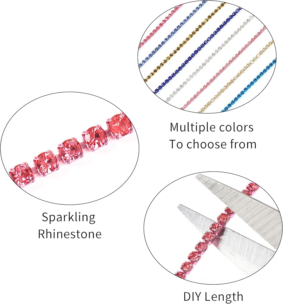 【Easy to Use】You can easily cut the crystal rhinestone chain into any size you want. And then use glue or sewing to complete your craft DIY works, which is simple and convenient.