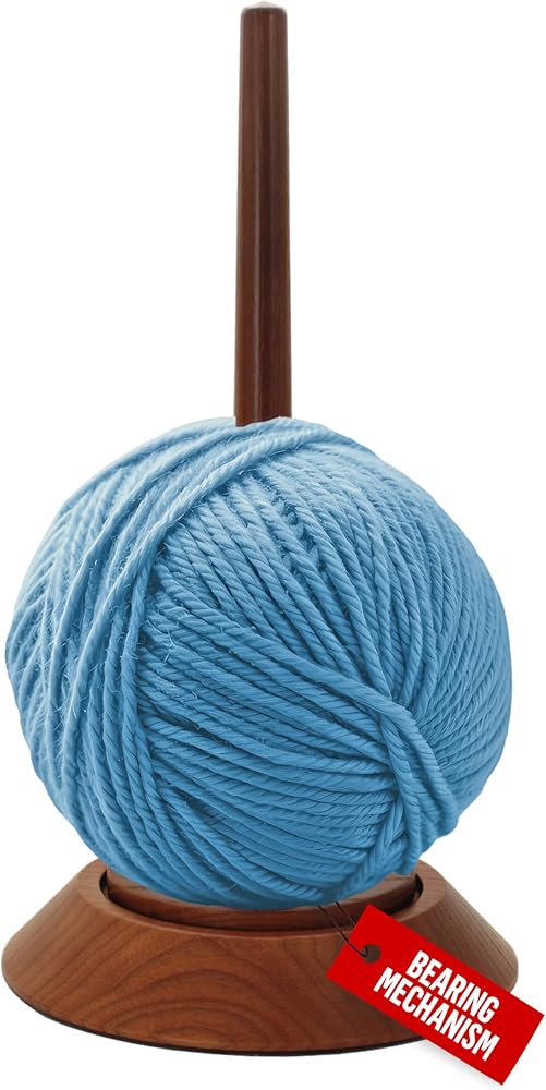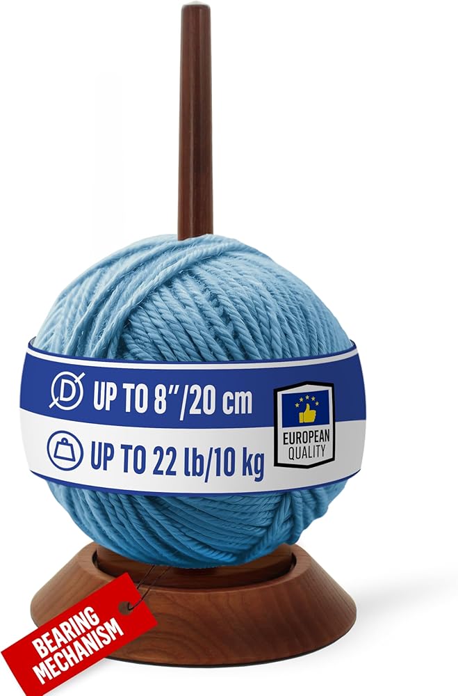 BARVA Yarn Holder 22 Lb Capacity for Chunky Yarn | Smooth Bearing Spinner & Big Rubber Anti Slip Pads for Stability | European Wood Crochet Accessories and Pro Tools for Fiber Crafts