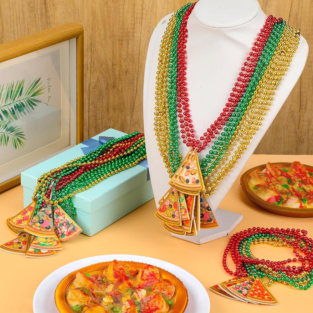 Our pizza necklaces are designed with striking colors, yellow, green, and red. Providing an attractive accent to any outfit. Suitable for celebrations or birthday parties, these necklaces are certain to bring your festivities to life.