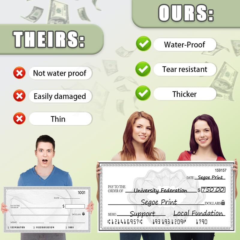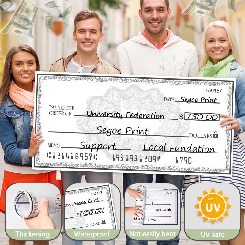 【Event-Ready Durability】Crafted with reinforced 4mm corrugated core and glossy laminate coating, our oversized checks maintain structural integrity for repeated indoor/outdoor use while resisting surface wear.