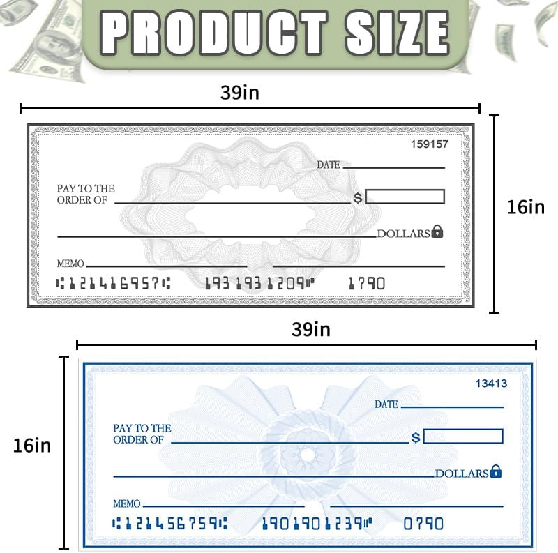 Big Check Giant Check | 40x16 Inch Double-Sided Reusable Donation Sign for Presentations & Social Media | Oversized Paper-Based Check Prop (Blue/Black)