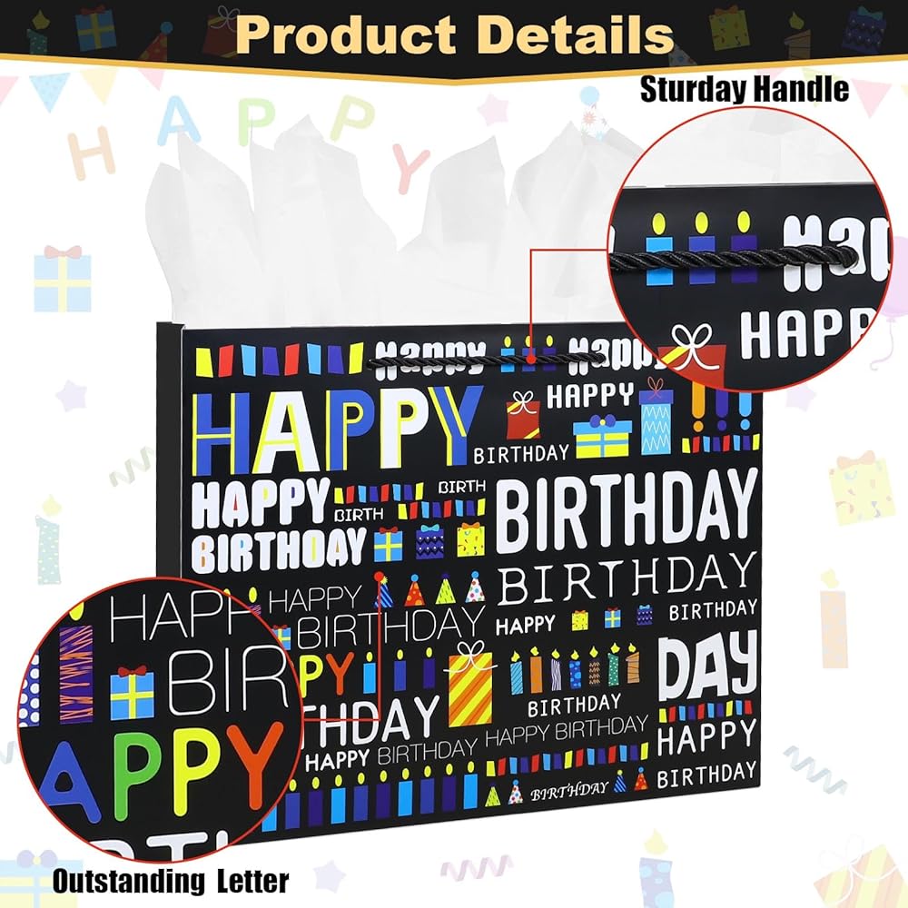 - 【Features】This 13" large birthday gift bag is printed with cute patterns, such as "Happy birthday" lettering, which is very pretty and beautifully.