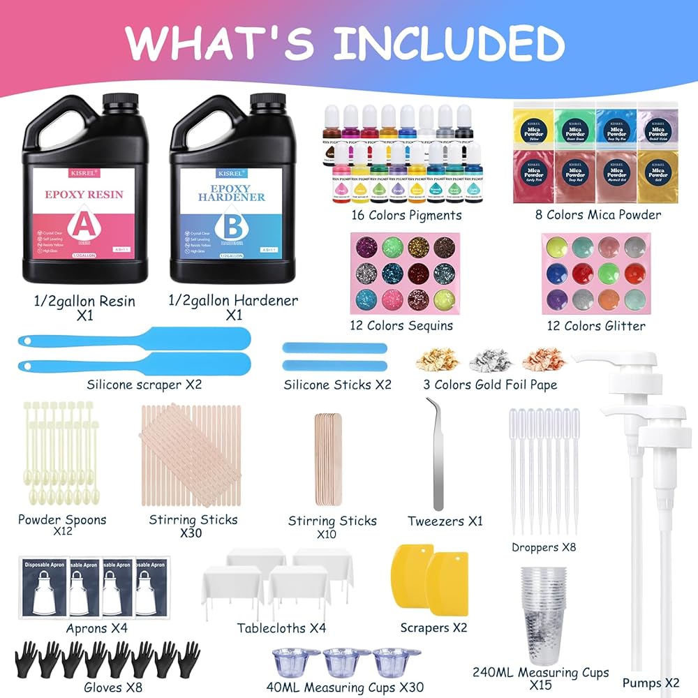 【Perfect Epoxy Resin Kit】:Includes 1 gallon resin, 1 gallon hardener, 2 pump. Upgraded formula, harder and more wear-resistant, no yellowing in long term use.