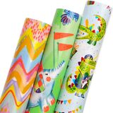 Ribbli Dinosaur Birthday Wrapping Paper 3 Rolls Happy Birthday Dinosaur Balloon Printed Wrapping Paper for Boys- Mini Roll 17 inch x 120 inch(10feet) Per Roll
