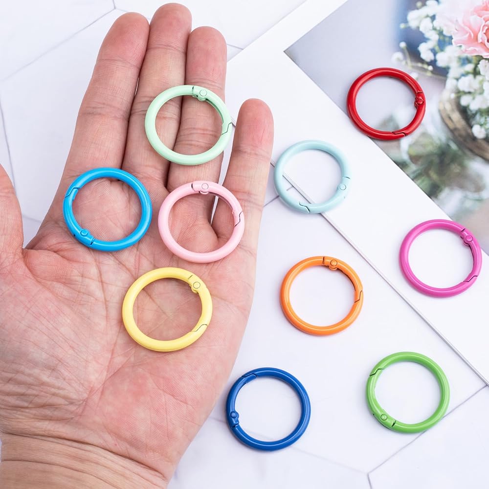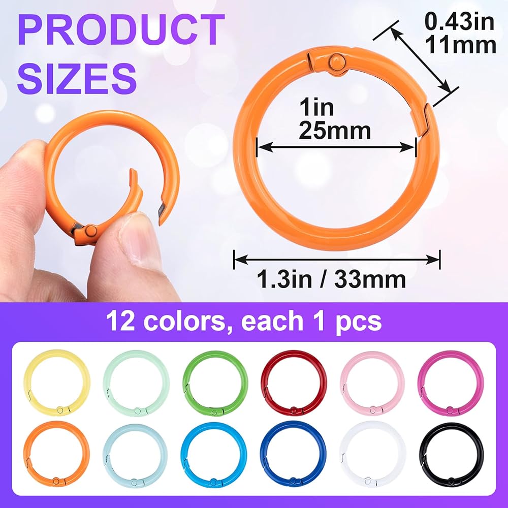 Package Contains: There are 24 pieces of round spring o rings in 12 colors, 2pcs per color. You can use it to hang keys, cards, suitable for handbag, purse, shoulder strap, key chains.