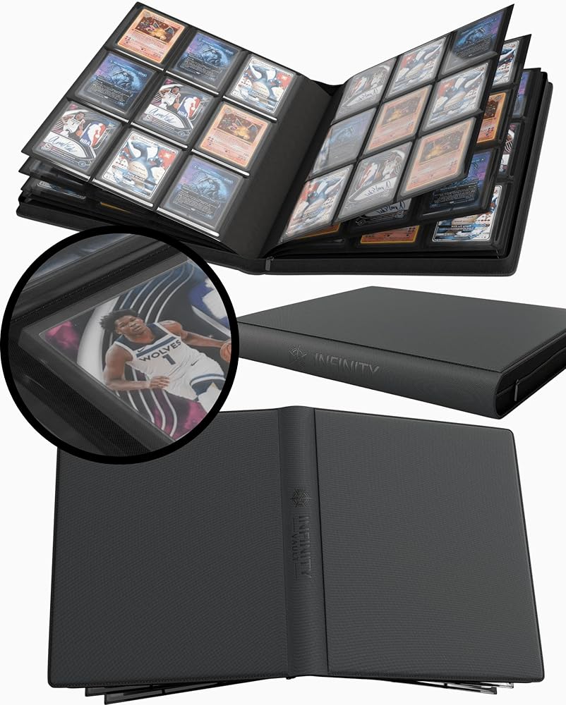 Safety First: The ultimate safety of your cards is a basic requirement for card storage. We recommend to put an inner sleeve around the card first, double sleeve if you can, and always use a hard sleeve for the outermost layer. Then you can store them in this beautiful top loader binder by Infinity Vault.