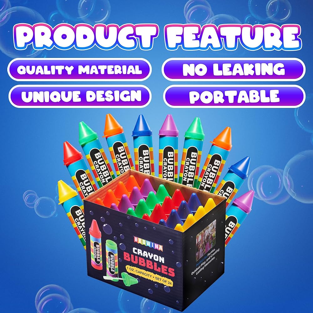 IDEAL PARTY FAVOR FOR ANY OCCASION: If you're looking for a great deal on quality bubble party favors for kids in bulk then look no further! These crayon bubbles make a great "non candy" party favor. They are perfect for birthday parties, goodie bags, carnival prizes, classroom treasure chests, and much more
