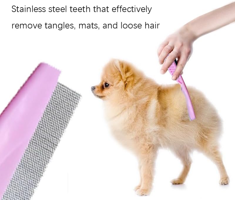 New Magic Pets Grooming Comb Kit, Multifunctional Pet Hair Comb for Tear Stain Removal and Gentle Grooming - Perfect for Small Dogs and Puppies, Dual-Sided Stainless Steel Comb (Pink)