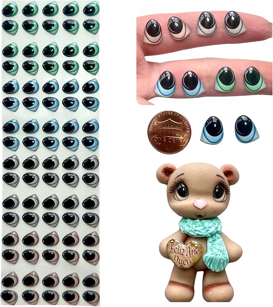 Premium 3D Resin Adhesive Eyes – 40 Pairs: This pack of 40 pairs of 3D adhesive or self-adhesive eyes with a high-quality resin layer offers a stunning glass-like or cabochon effect, perfect for adding a whimsical touch to your crafts. Whether you're creating googly eyes, fantasy eyes, or embellishments for DIY projects, these eyes are designed for durability. Heat-resistant, pre-cut, and fully waterproof, they're ideal for use in cold porcelain, clay, sculptures, and holiday crafts like Christmas gifts. Suitable for a variety of surfaces including EVA, marzipan, papier-mâché, fabric, plastic, amigurumi, moldable foam, wood, metal, cardboard, wool, glass, and more. With heat resistance up to 275°F for 30 minutes in the oven, they are perfect for a wide range of creative and decorative projects.Crafted for Artisans and Artists: Our premium 3D resin adhesive eyes are meticulously designed to meet the highest quality standards, ensuring exceptional durability and performance. Specifically crafted for creative projects, they provide a professional touch to any artwork. Not suitable for children and should be kept out of reach of unsupervised pets for safety. Perfect for artisans, crafters, and DIY enthusiasts looking to elevate their creative projects with top-tier materials.Safety First: Keep out of reach of children and unsupervised pets to ensure safety.Strong Adhesive: These premium 3D resin googly eyes feature an ultra-strong adhesive backing, providing a reliable and lasting bond without the need for extra glue. Simply peel off the paper backing and apply—these eyes securely attach to any surface, making your crafting and DIY projects effortless and mess-free. Perfect for quick and durable applications on various materials.Easy to Use & Versatile: These 3D resin adhesive eyes are designed for effortless application, thanks to their strong adhesive that guarantees a long-lasting and secure hold on various surfaces. For more delicate materials like felt or wool, simply add a bit of hot glue for extra adhesion. Perfect for a wide range of creative projects, these eyes are suitable for baking in clay, polymer clay sculptures, or cold porcelain. They're ideal for custom creations such as greeting cards, scrapbooks, scrapbooking, furniture, bottle decorations, photos, elf pranks, DIY gifts, lanterns, shoes, signs, and more—let your imagination run wild! These eyes add a touch of personality and realism to any project, helping you stand out in the crafting world.Add Fun and Personality to Everything: These high-quality adhesive eyes are perfect for adding a playful and original touch to your everyday items. Whether it's decorating furniture, personalizing your backpack, or embellishing your phone, laptop, tablet, or even home appliances, these eyes bring a burst of creativity and joy to any surface. Not just for crafting, they bring life and happiness to any object, making your creations stand out with their unique and whimsical charm.