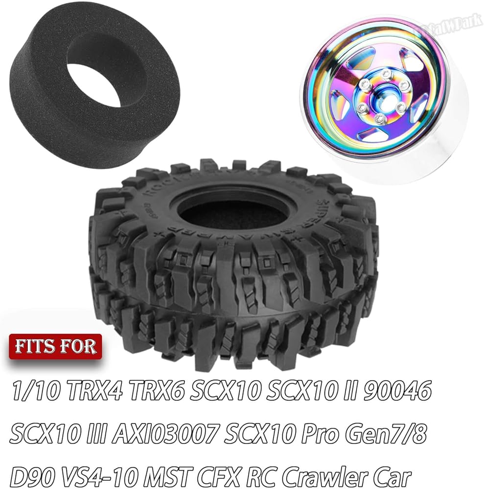 【Fits For】: for 1/10 TRX4 TRX6 SCX10 SCX10 II 90046 SCX10 III AXI03007 SCX10 Pro Gen7/8 D90 VS4-10 MST CFX RC Crawler Car,4PCS RC 1.9 in Wheel Tires.
