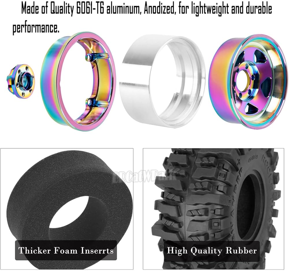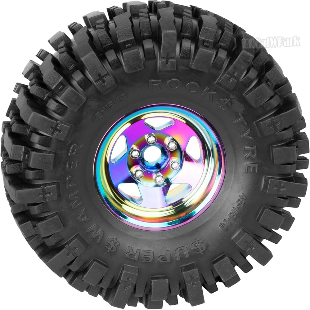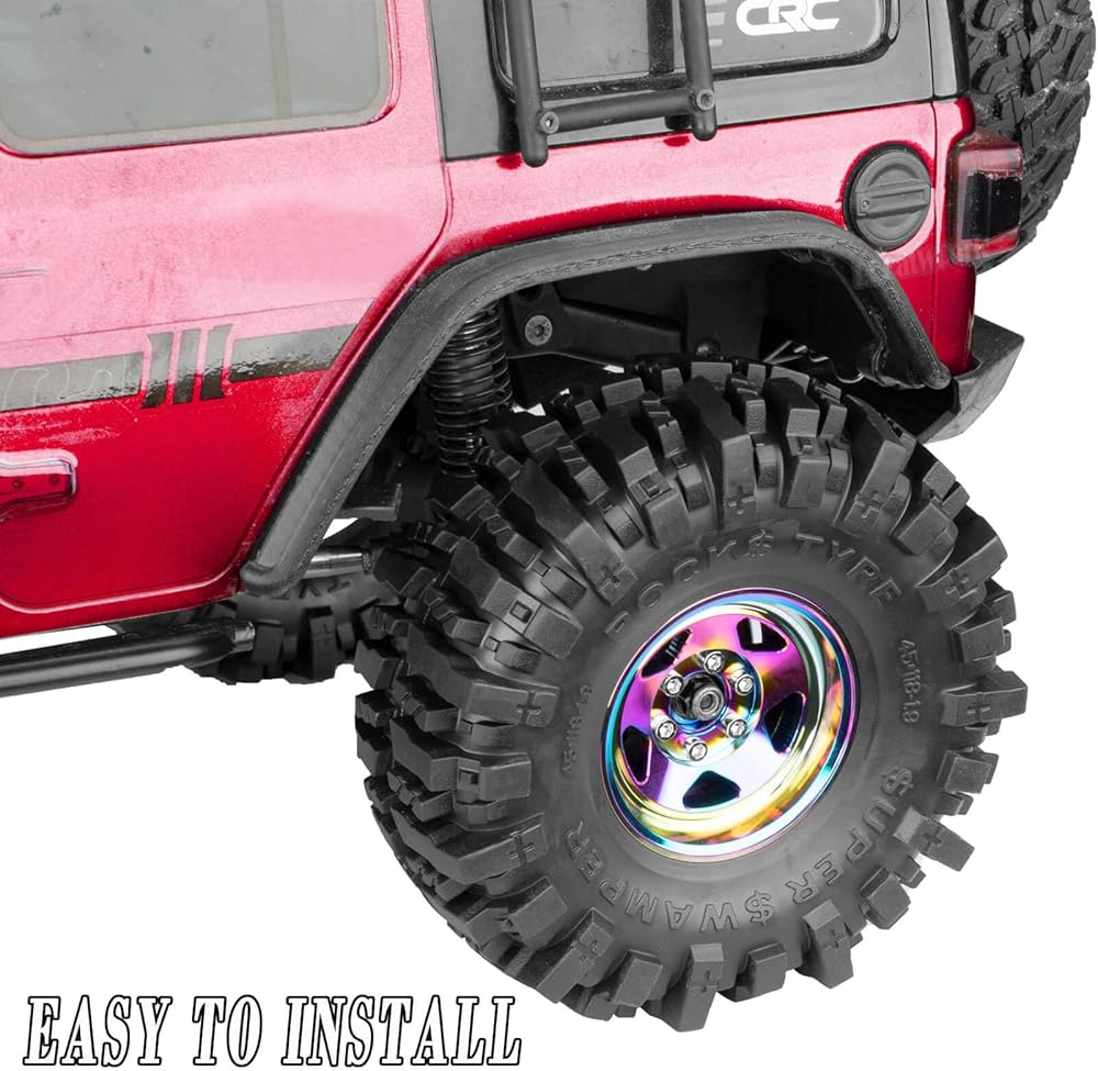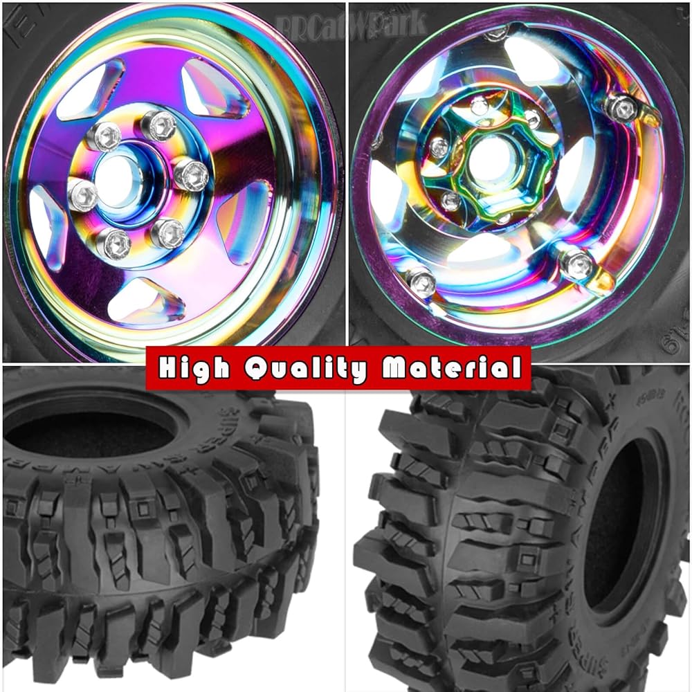【High-quality Material】:RC 1.9 Beadlock Wheel Rims of 6061 anodized aluminum,precision CNC machined,lightweight and durable,increase the long-lasting durability.
