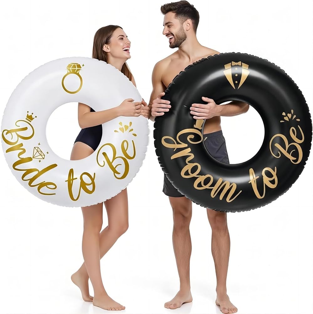 Design and Colors: the exquisite pattern and complementary black and white colors of the bachelorette pool floats, representing the bride and groom, will make you the talk of any summer gathering; A blend of elegance and fun, these pool bachelorette party decorations are a most people love