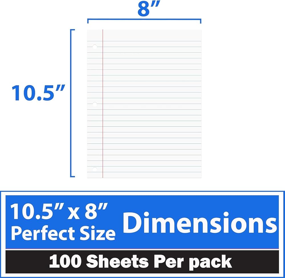 Back To School Supplies - Your One Stop Shop - COLLEGE RULED - Filer Paper, Loose Leaf Paper, 3 Holed Punched, Red Line Margin - 8" x 10.5" - College Ruled - 175 Sheets