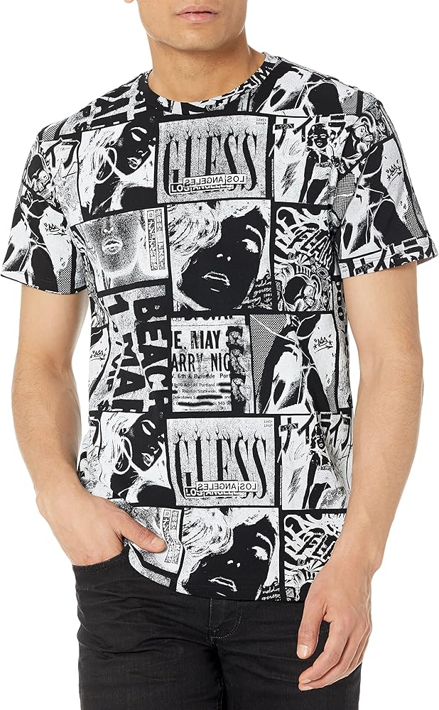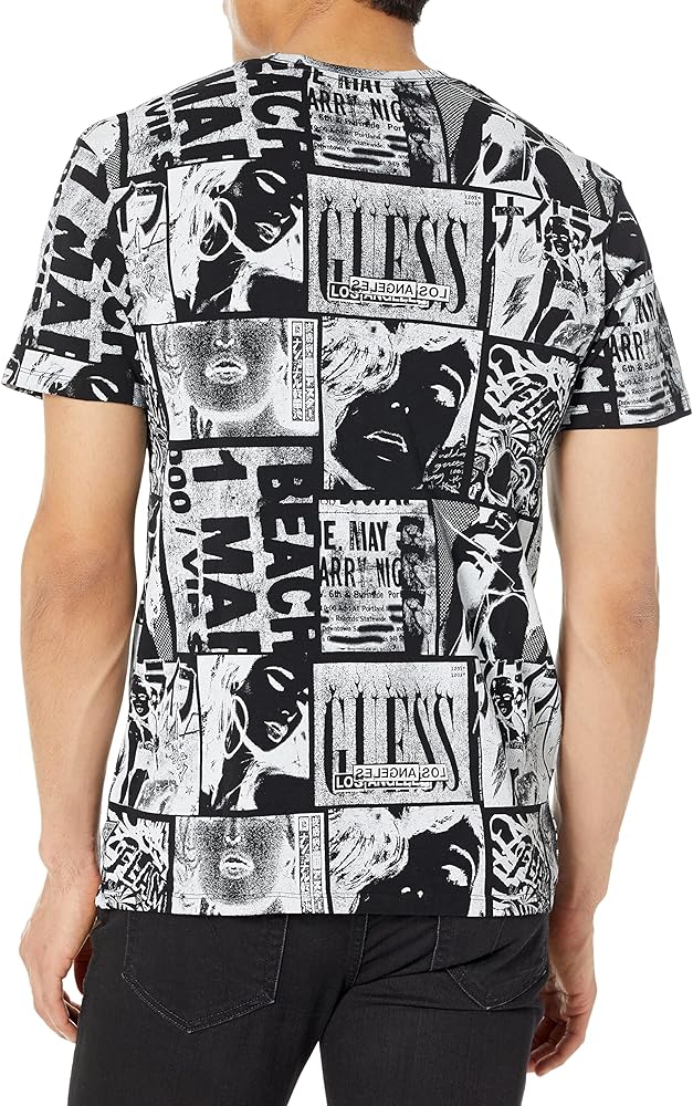 GUESS mens Short Sleeve Basic City Riot Tee T Shirt, Jet Black Multi, Medium US