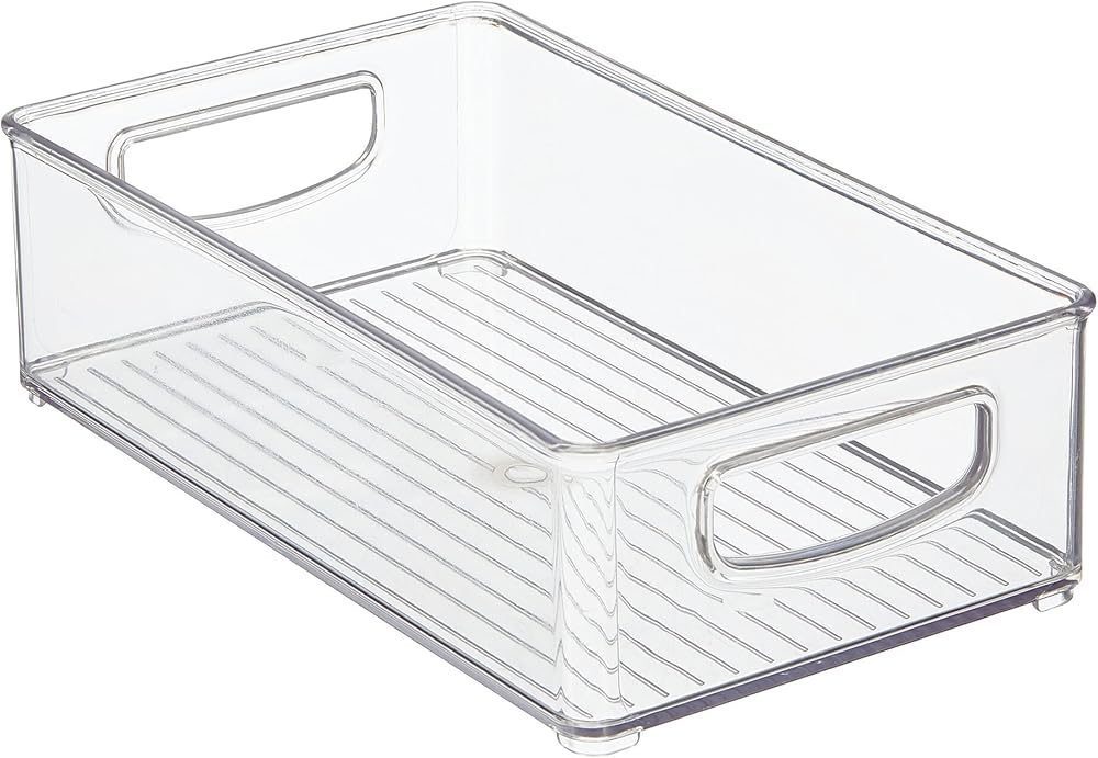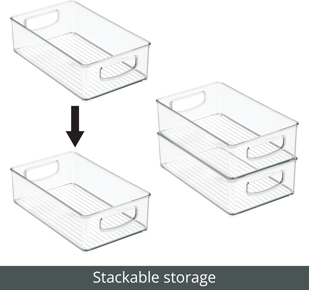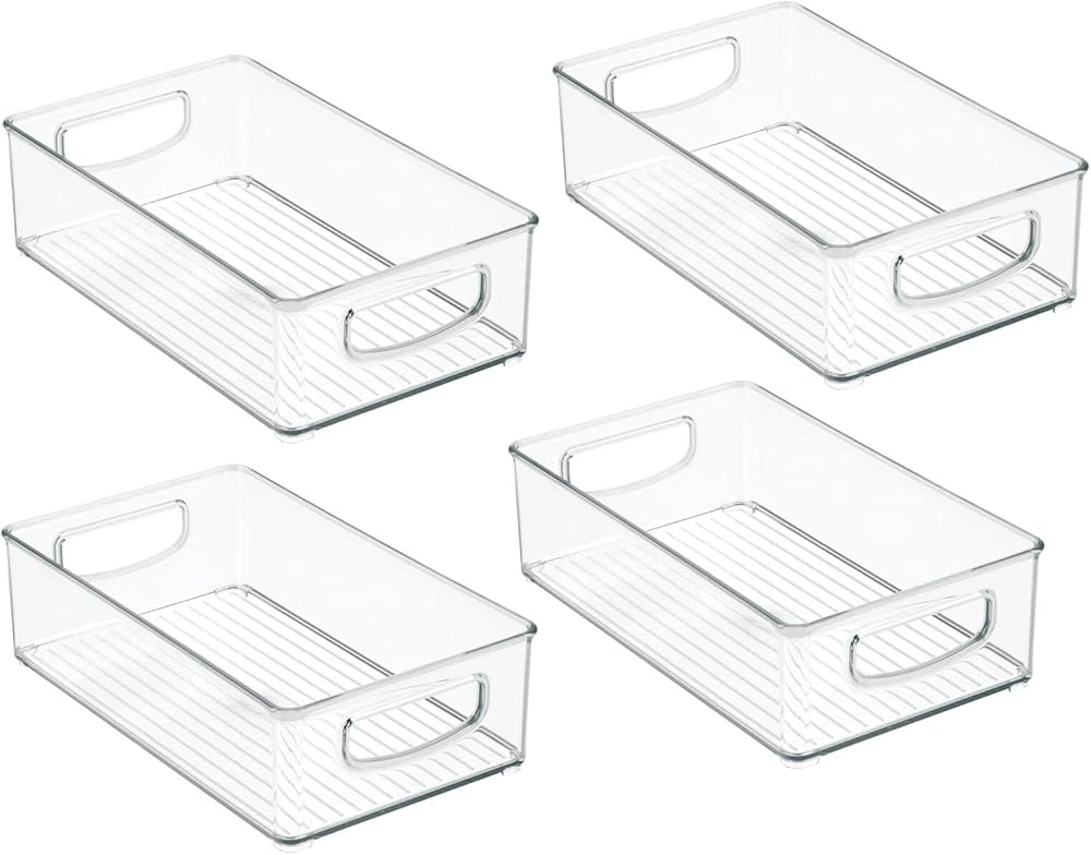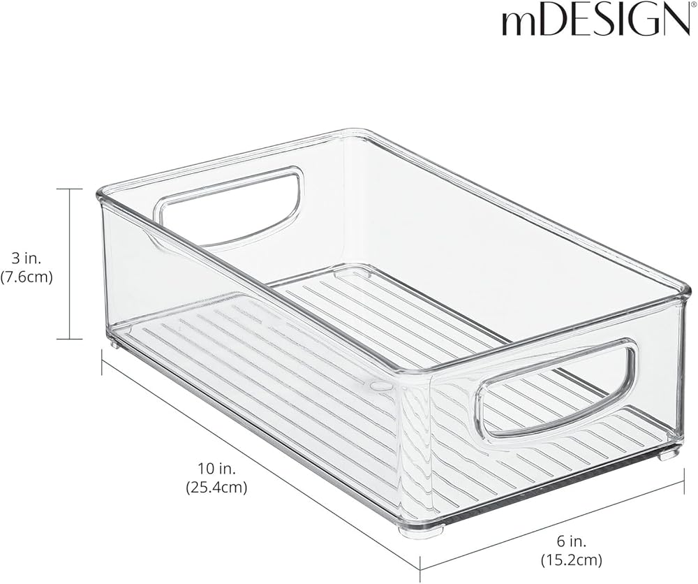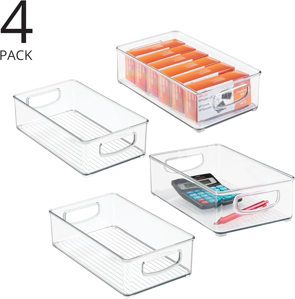 mDesign Small Plastic Office Storage Container Bins w/Handles for Organization in Filing Cabinet, Closet Shelf, Desk Drawers, Organizer for Notes, Pens, Pencils - Ligne Collection, 4 Pack - Clear