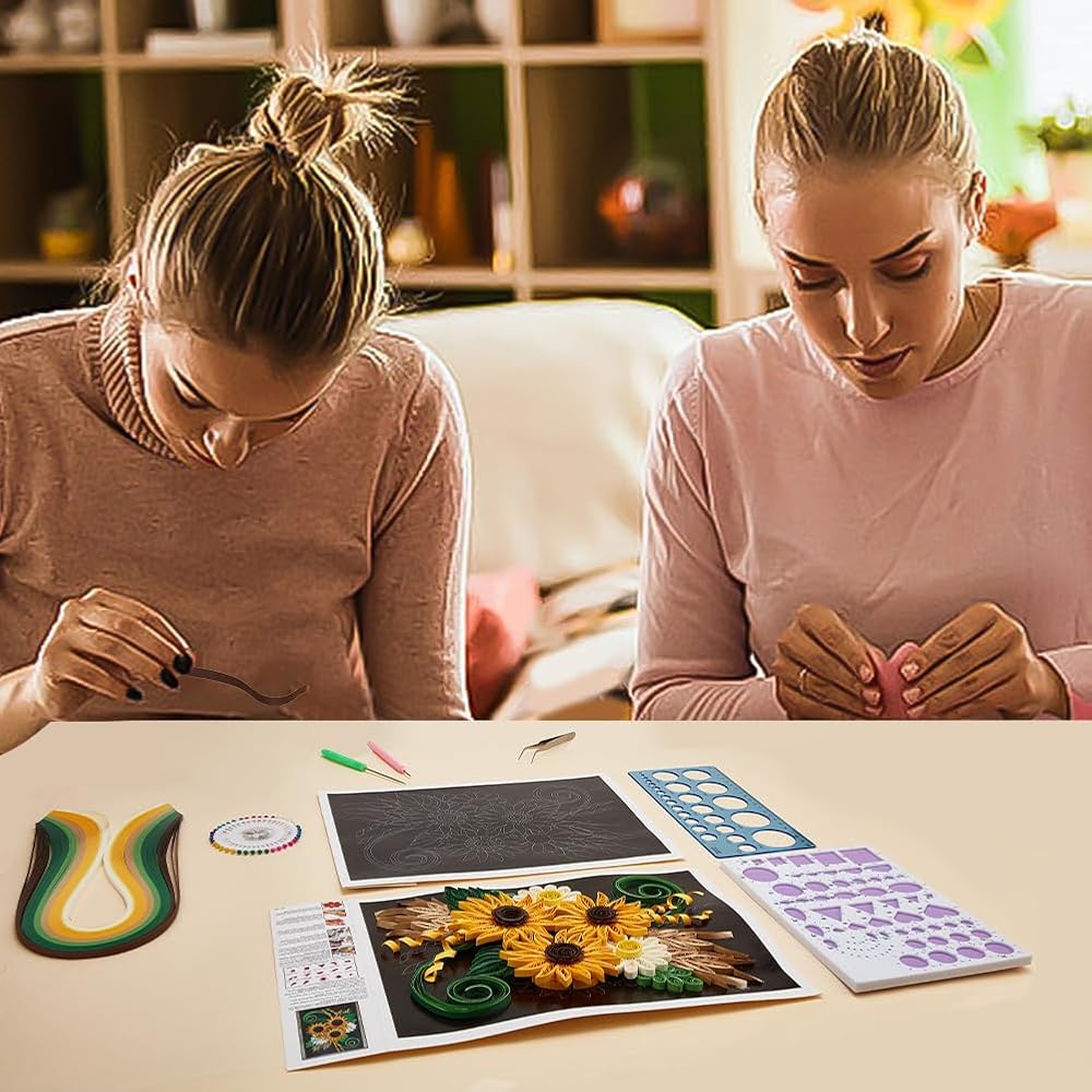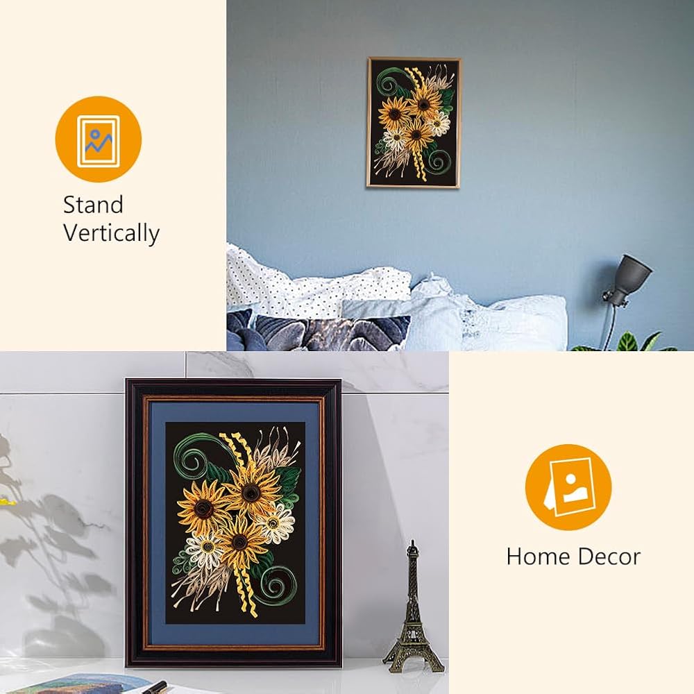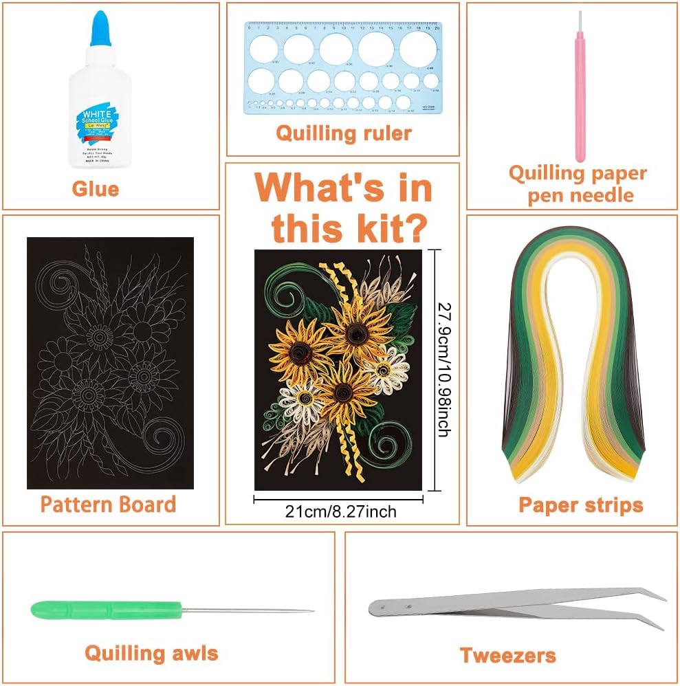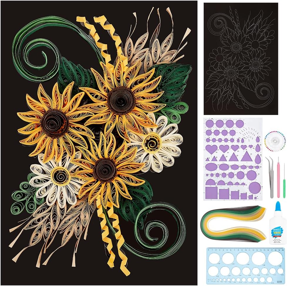 WEBEEDY Paper Quilling Kit DIY Sunflower Paper Filigree Kit with Quilling Strips Tool and Supplies Paper Quilling Set for Beginners Handmade Crafts Modern Room Wall Art Decor Gift,21×27.9cm/8.3×11"