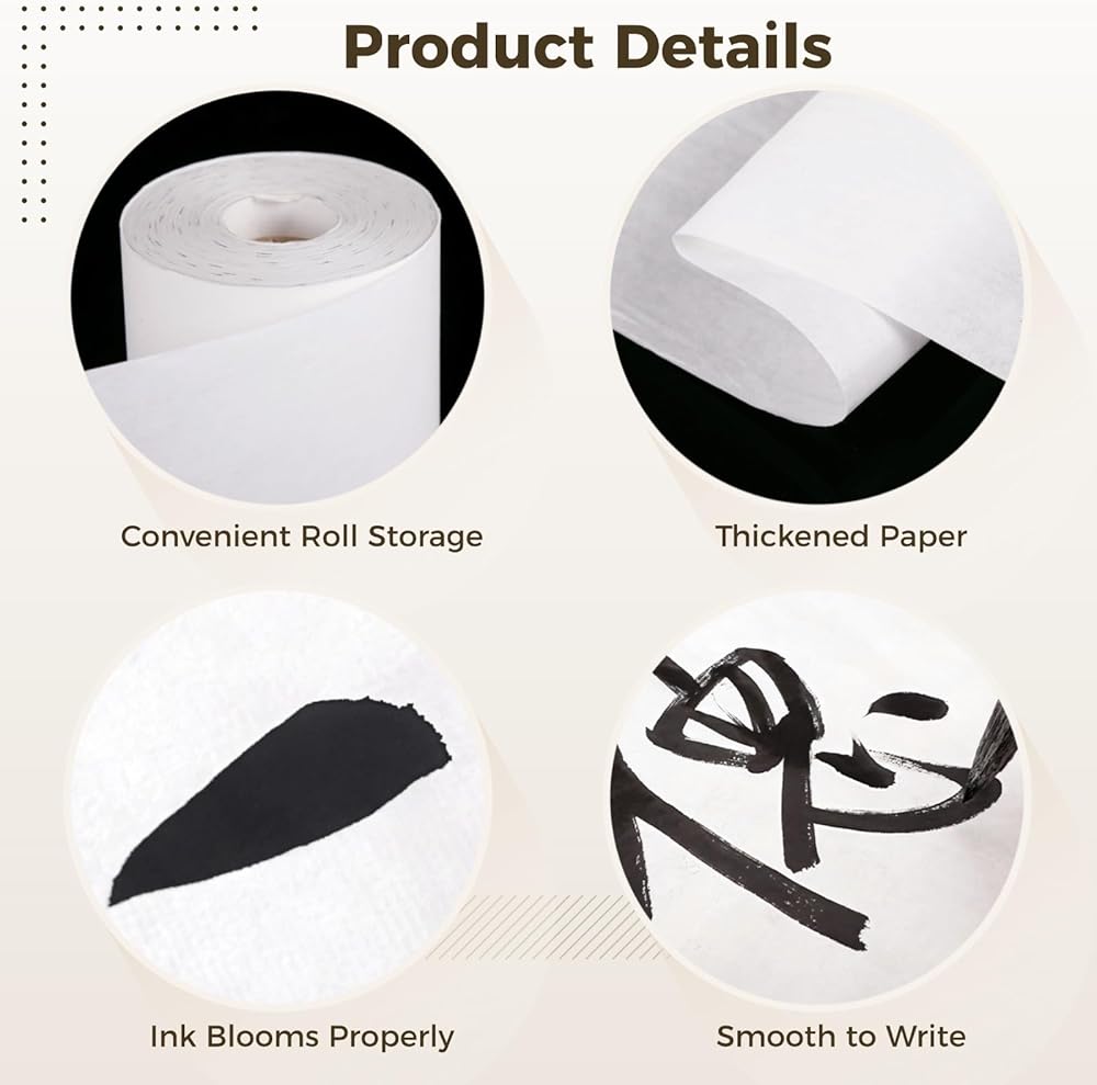 • Perfect Size: Measuring 13.8 inches x 164 feet, Chinese calligraphy sumi paper offers enough space for various art projects, from small calligraphy to large paintings. Ideal for showing artistic talent