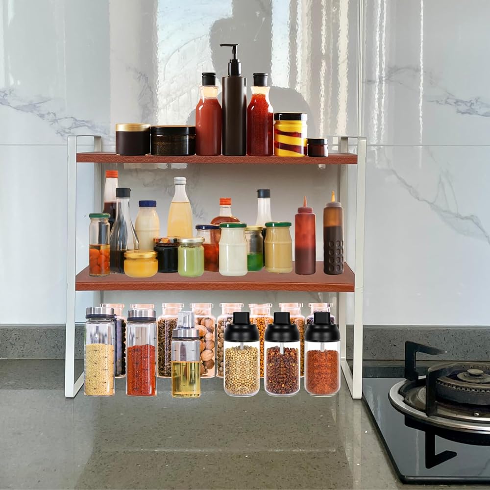 [Say Goodbye to Clutter]-Declutter your space with this 2-tier shelf countertop organizer, perfect for kitchens, offices, bedrooms, or bathrooms. Use it as a small desk organizer for stationery, a spice rack for your kitchen, or a tabletop shelf for decor. Its compact yet versatile design makes it ideal for keeping your essentials organized and accessible