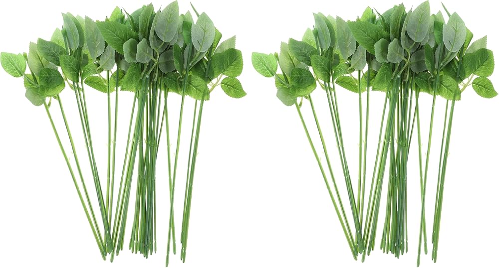60 pcs Rose Flower Stem Single Branch with Leaves Rose Stem Plastic Rose Decorative Stem