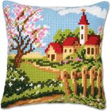 Vervaco Village Cross Stitch Cushion, Multi-Colour