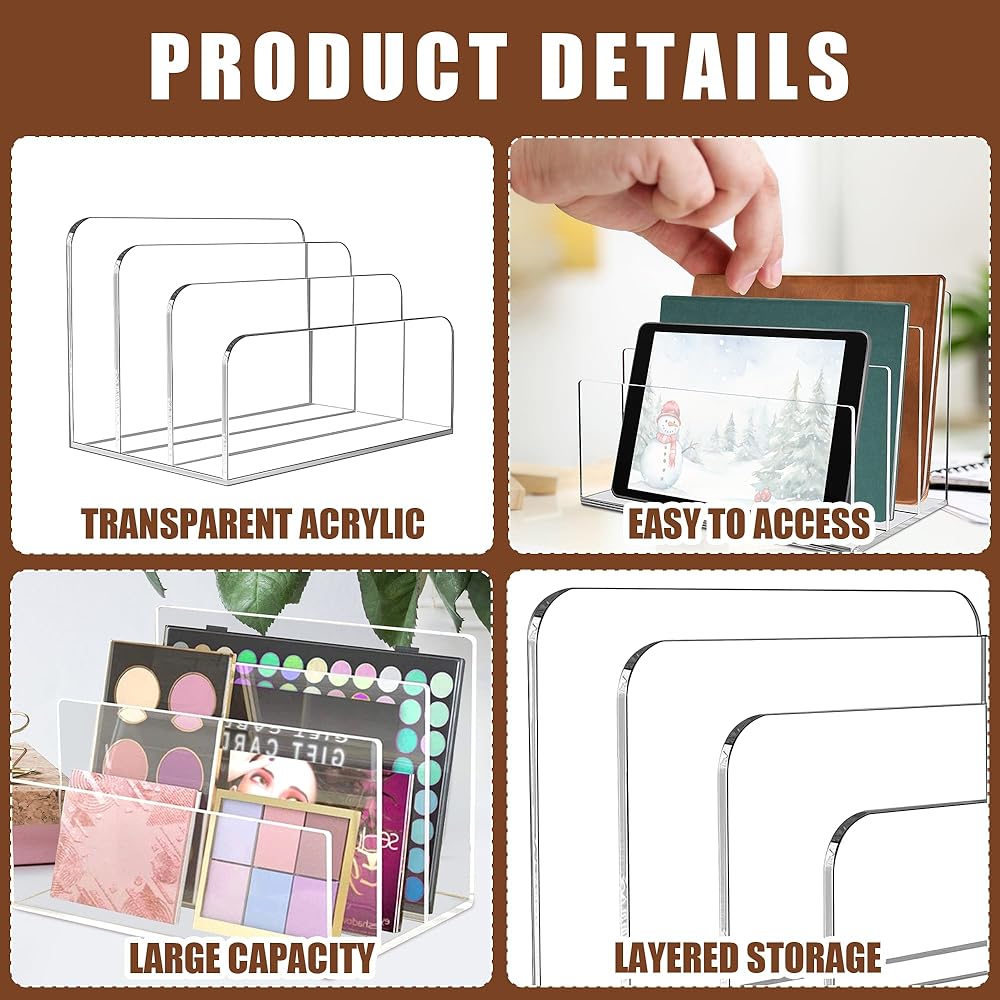 【Multifunctional Storage】: Acrylic desk organizer size 6.89 inches long, 3.94 inches wide x 3.94 inches high, which can hold notebooks, emails, magazines, folders, etc., making the desktop tidy and organized without taking up space.