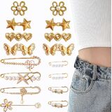 Package Includes:4 different styles pant waist tightener and 4 different styles pearl safety pins,every style 2 set.
