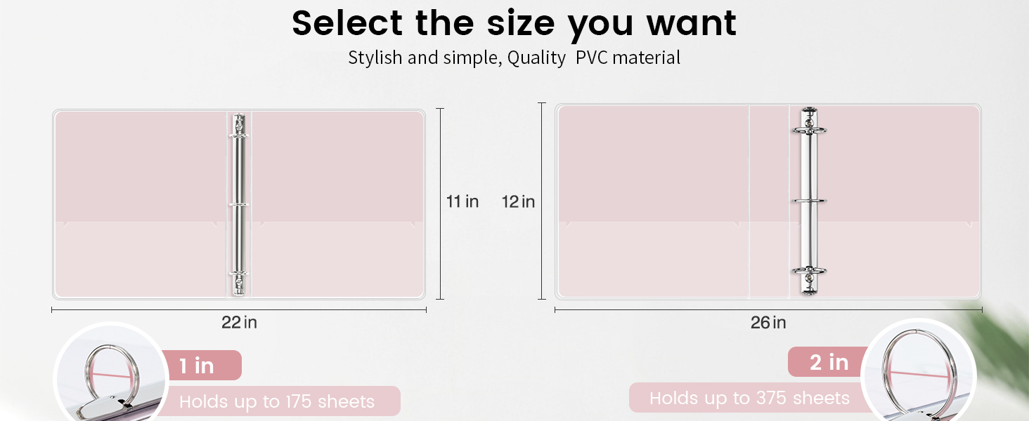 • Customizable Design---1" & 2" ring binder design with clear overlay on both front and back allows you personalize your covers, additionanl small label for classification management; PVC cover is waterproof for long term use