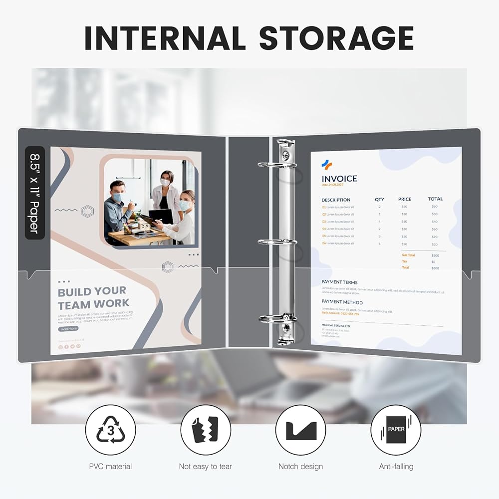 • Additional Storage---View Binder create with 2 inner clear pockets on both sides of the cover hold unpunched or scattered documents