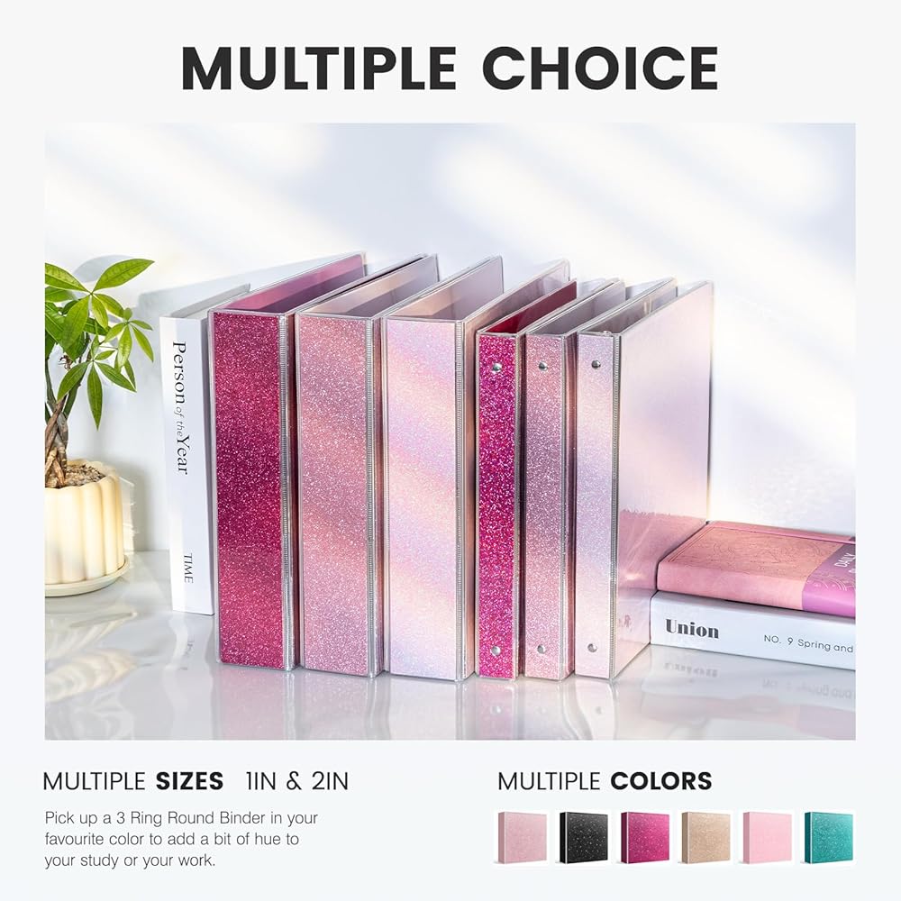 • Shinee Color---Glitter binder have 12 color provide fashion view and have two size(1" & 2" )for you to choose.suitable for officers, students, teachers,Musicians, restaurants and organizers use