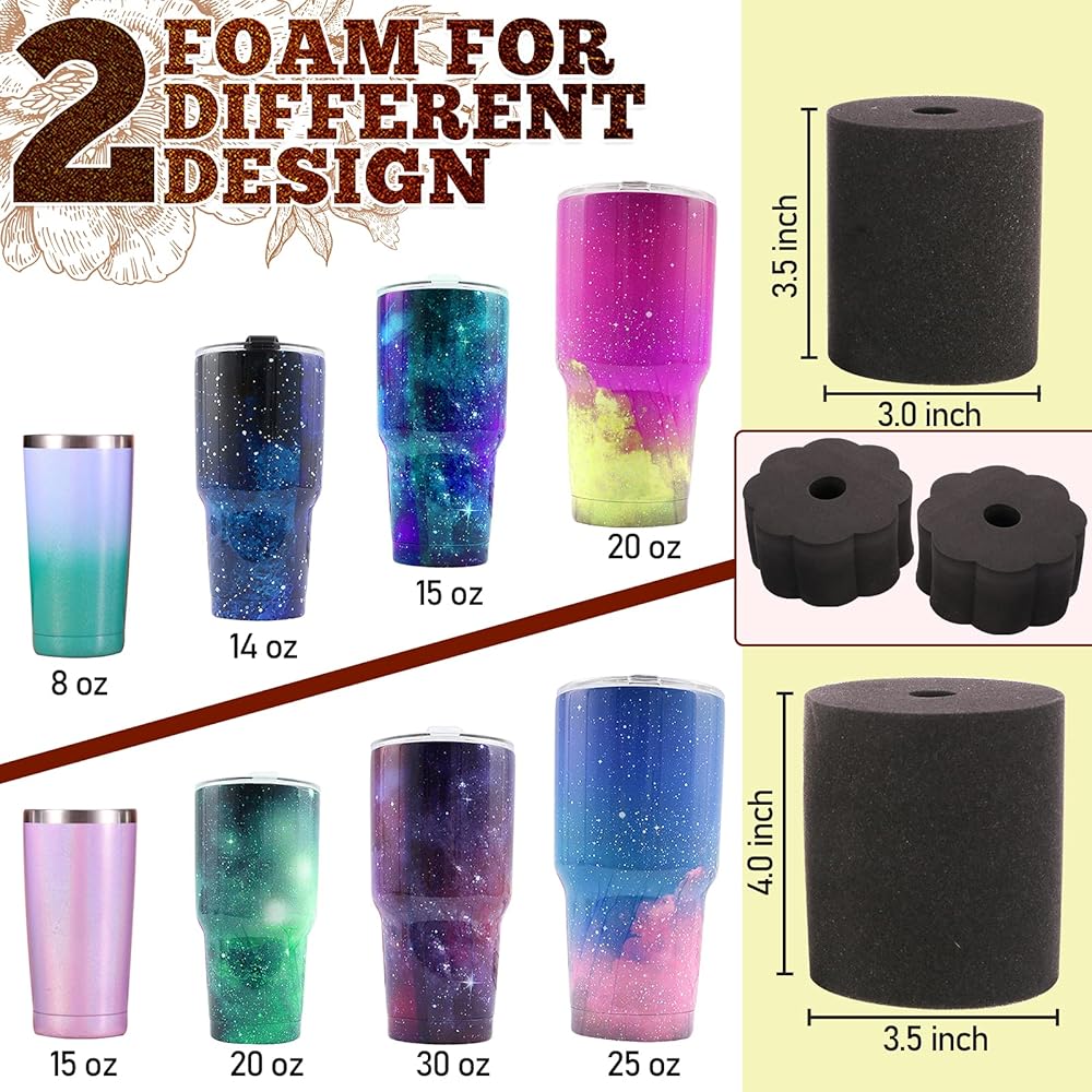 【TOP NOTCH TUMBLER TURNER WITH STAND】Our company maintains the reputation by providing the most practical and top-notch quality stainless steel tumbler turner tool withstand and epoxy and resin and so on that you can decorate your cup with glitters and sequin with the help of 2 different foams and many cool accessories.