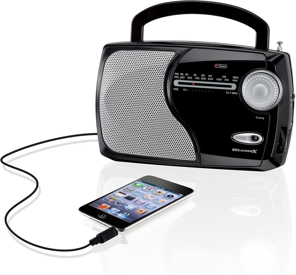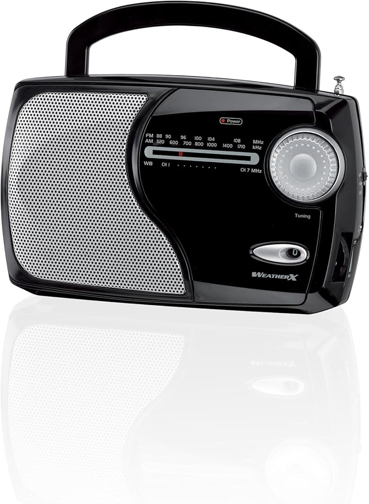 The WeatherX WR282R Portable NOAA Weather and AM/FM Radio is the perfect combination of an everyday essential and an emergency situation necessity. Tune into music, talk radio, and traffic daily on the AM/FM radio. Then when needed the weather band radio will keep you informed of the latest NOAA alerts and local AM and FM programs. Battery or AC power and a built-in handle make it easy to take the WR282R with you wherever you go. WeatherX products are made for rain or shine with safety in mind.