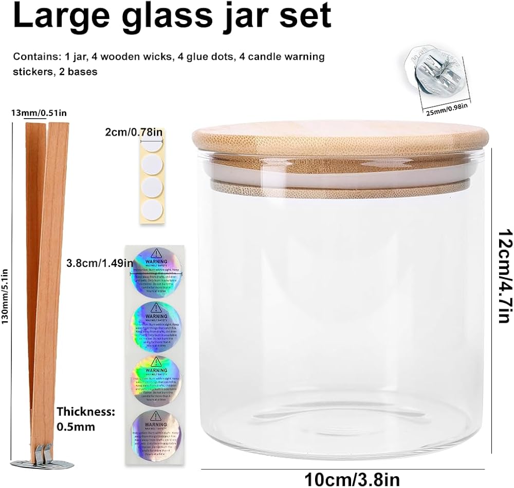 • الأبعاد: سعة جرة الشموع هي 750 مل ، حوالي 25 أوقية. يتضمن 4 قطع من فتيل خشب الكرز ، 2 من حاملي الفتيل ، 4 ملصقات تحذير ، 4 أشرطة جولة على الوجهين