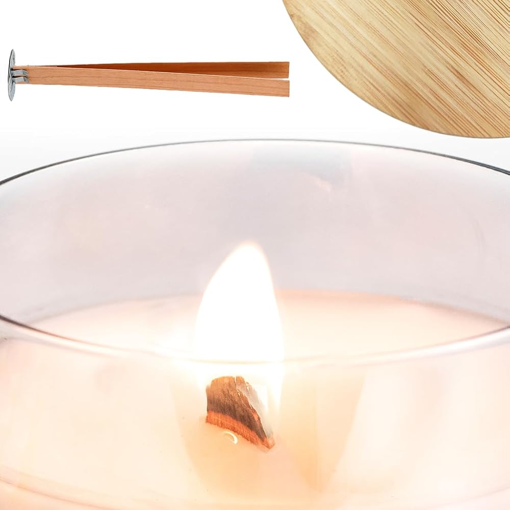 Ziosxin 25oz جرة زجاجية مع خيزران غطاء الشمعة الشفافة لصنع الشموع DIY ، جرة زجاجية فارغة (تأتي مع مجموعتين من فتيل خشب الكرز)