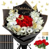 The money flower bouquet kit is equipped with 3D butterflies, ribbons, and black greeting card in the design of hats. They are accessories for decorating bouquets, which are very practical and exquisite, and no additional purchase is required.