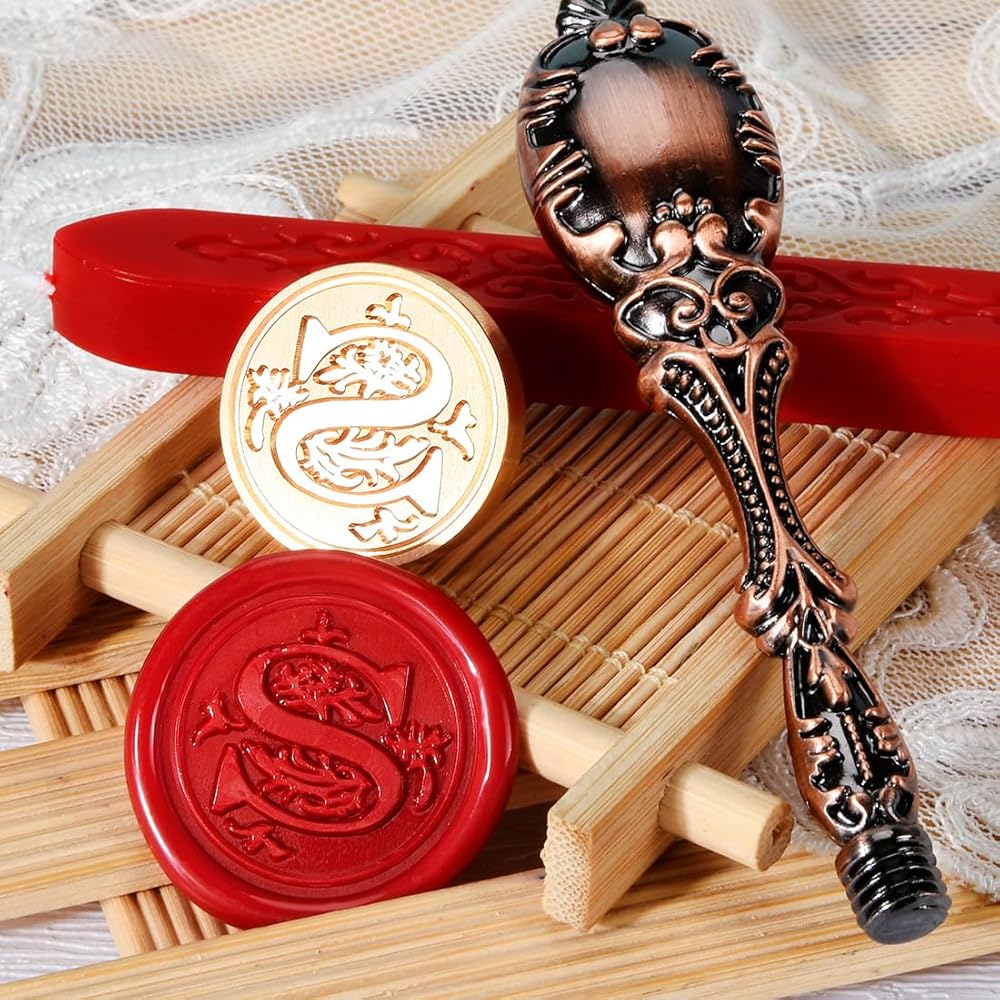 Package: 1x Red Wick Wax Candle, 1x Letter "S" Engraved Stamp with antique gorgeous brass handle. It will come with a Fine Gift box, Perfect Gift for women friends or family