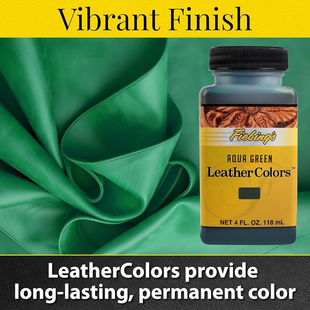 Fiebing's LeatherColors (4 Fl Oz, Aqua Green) - Leather Dye for Natural Leather - Water-Based, Non-Flammable Formula - Permanent & Penetrating Color for Shoes, Boots, Furniture - Safe for Institutions