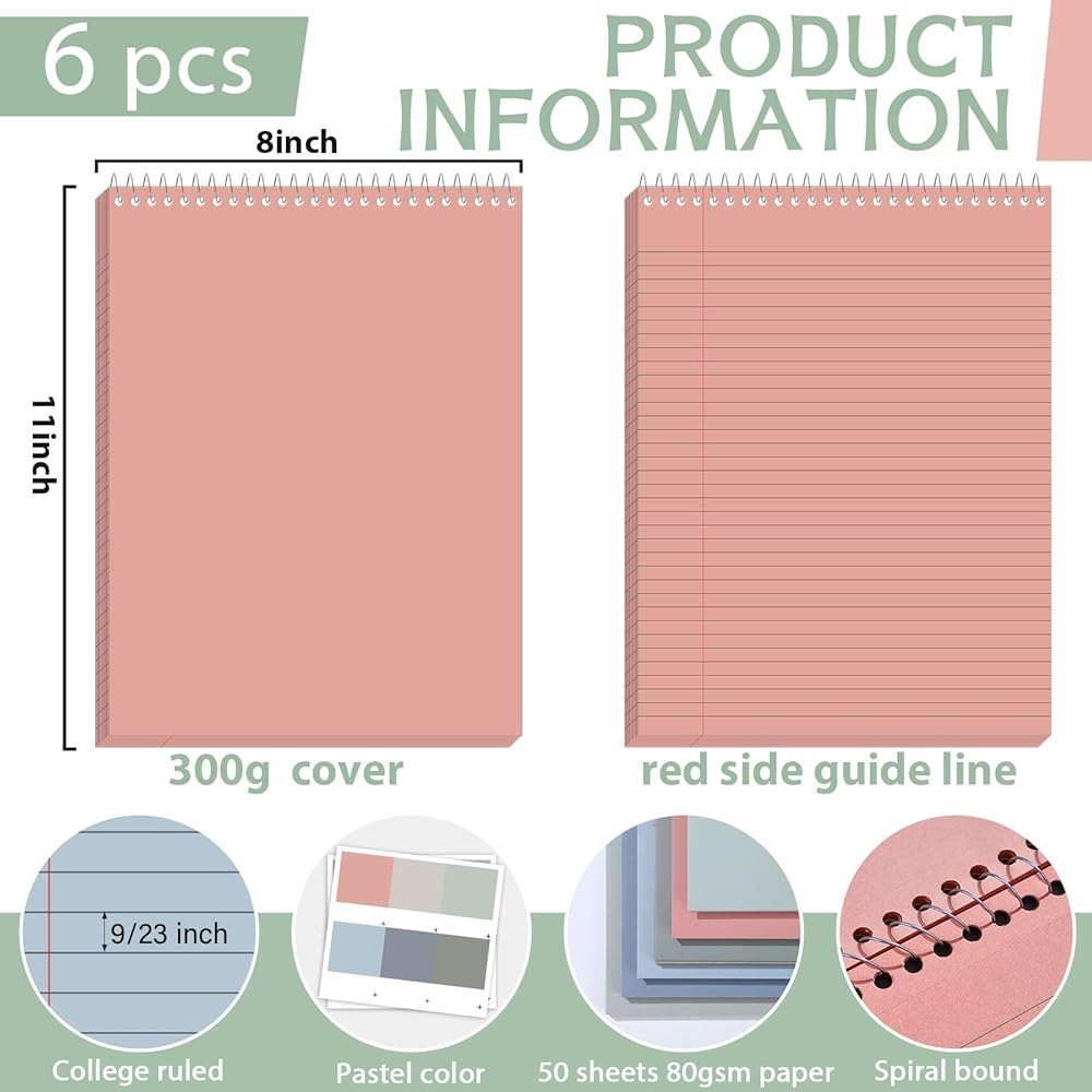 Aesthetic Top Spiral Notebooks: These spiral steno pads come in 6 pastel colors, containing 50 sheets, 300 sheets in total. The top bound spiral notebook is reinforced with a 1.5mm thick cardboard backing fixed at the top edge, providing extra support, so you can take notes on your lap or while standing, making it suitable for any writing occasion.