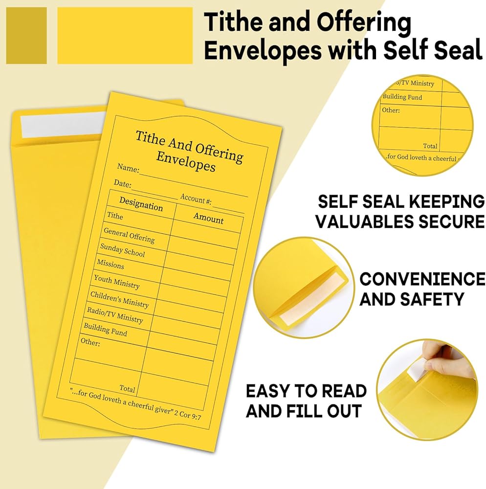 The 6.5 x 3.5inch church supplies tithe and offering envelope made from high quality paper. These church offering envelopes are easy to open and can be sealed using the easy Peel and Seal tape.