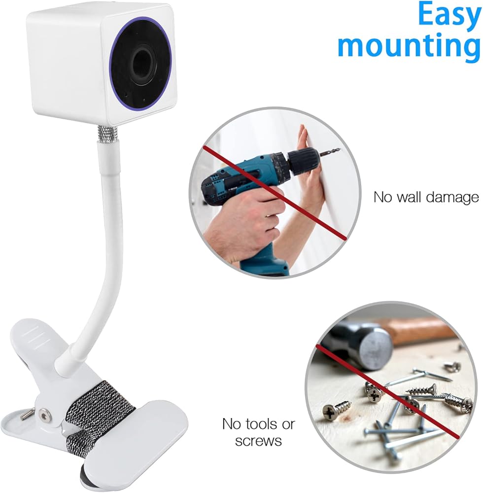 【Compatible Devices】:The flexible clip mount is designed for Wyze Cam OG2/V3/V3 PRO, Wyze Cam Outdoor v1/v2, Wyze Cam pan/pan v2/pan v3 Baby Monitor.