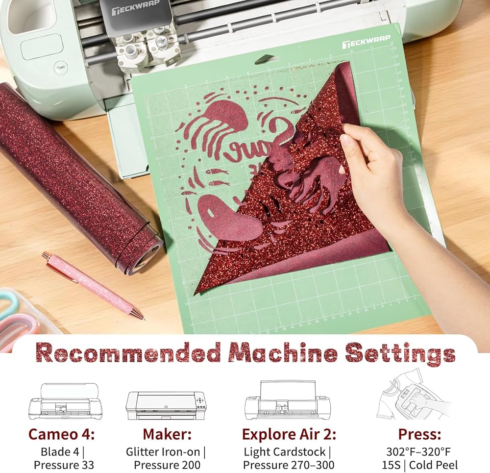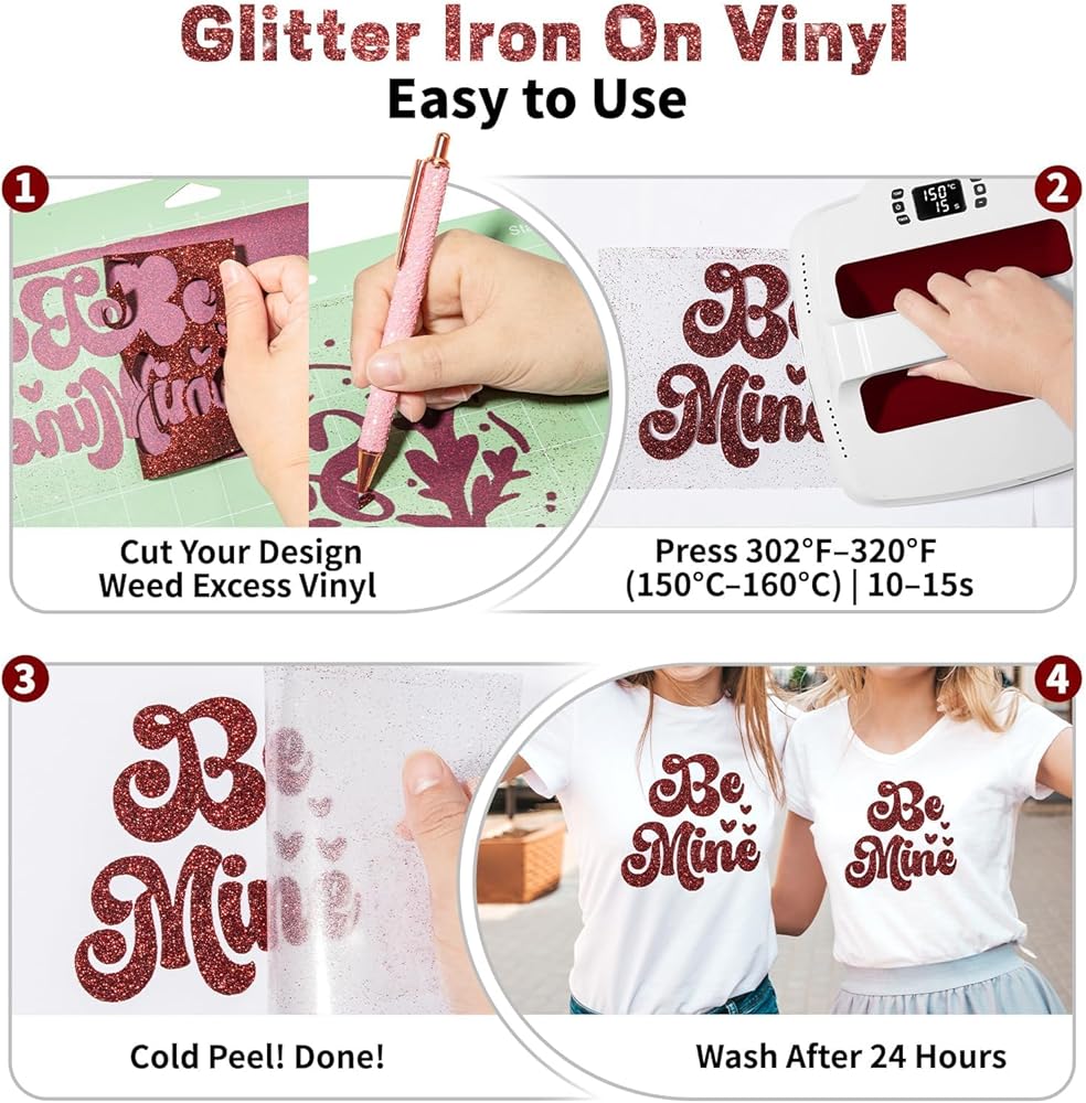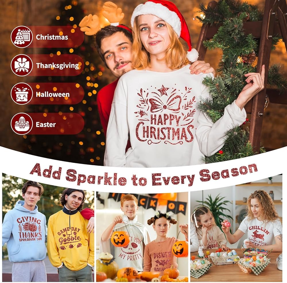 PERFECT CHOICE FOR DIY CREATION. Elevate your DIY creations with our 10" x 5ft vinyl iron on heat transfer that includes a roll of glitter HTV in gold, rose gold, grey, blue, purple, green, or silver. It is the perfect choice for any occasion. This 100% eco-friendly iron on vinyl works seamlessly with all cutting machines to simplify any project. Bring your vision to life with ease.