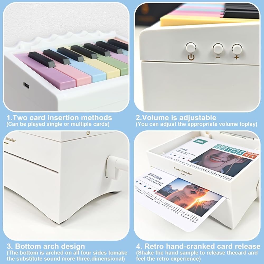 The music scores can be stored in the piano, and by rotating the hand crank on the right, you can rotate to the new calendar and music scores for a new week, allowing you to easily play beautiful melodies.