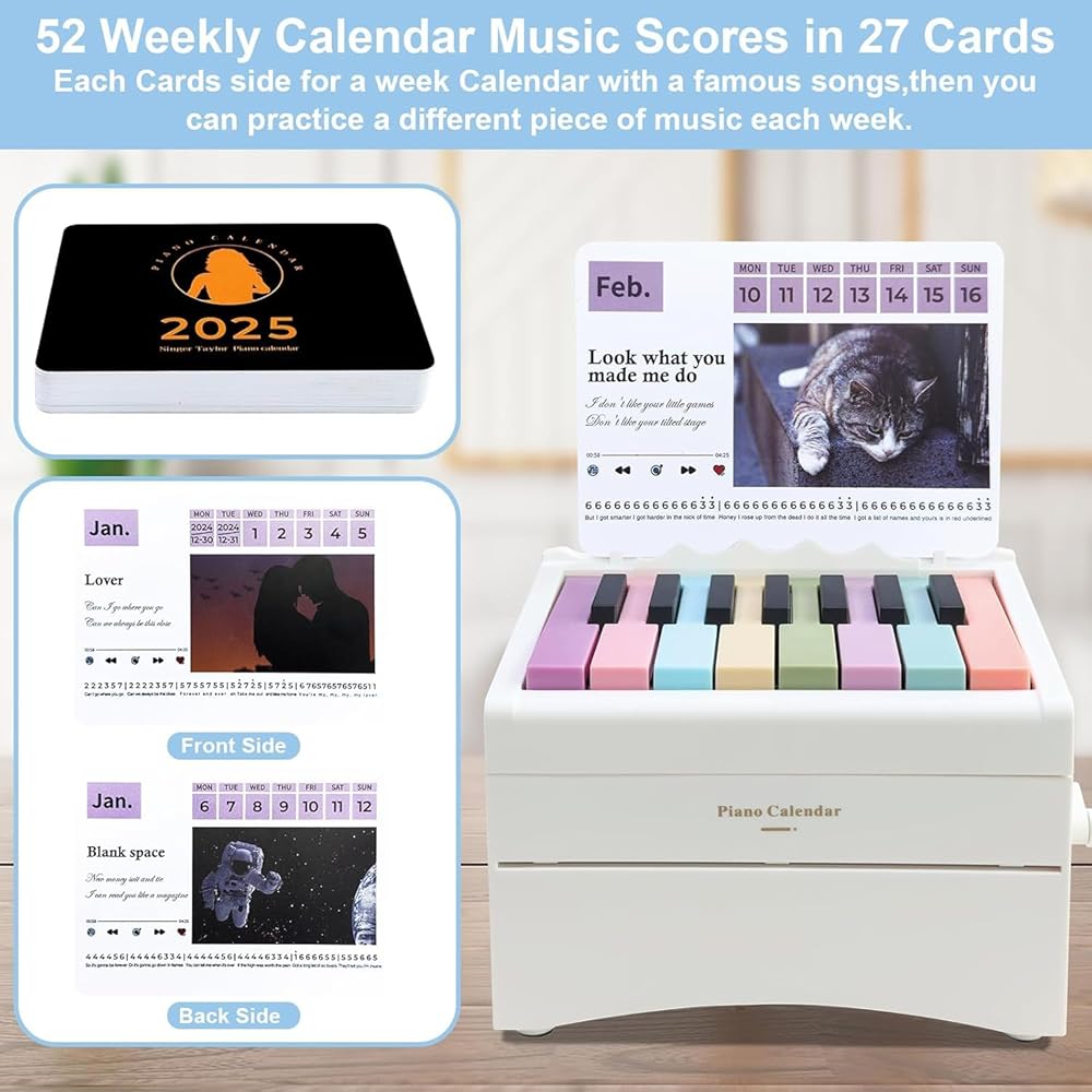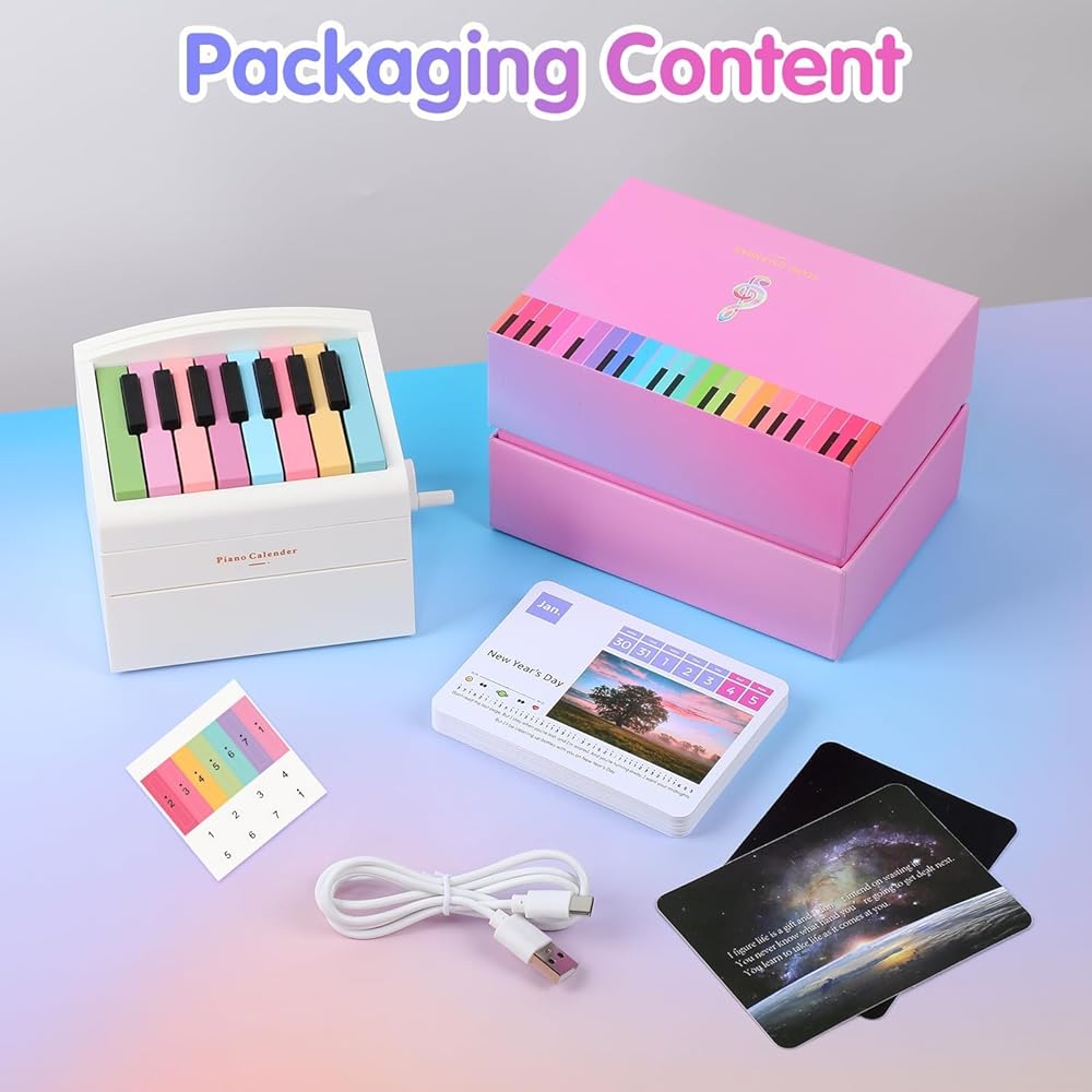 The piano calendar stands out with its innovative and eye-catching design, perfectly combining functionality, artistry, and stunning piano calendars. Its piano playing function brings surprises to family, friends, and music enthusiasts. It can also be used as a desktop decoration, bookmark, calendar, art decoration, and collectible.
