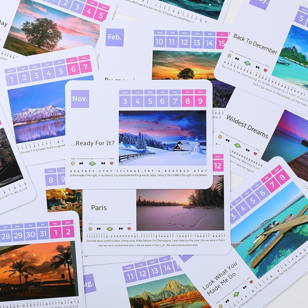 The piano calendar is made of high-quality ABS material and exquisite spray painting craftsmanship, making it look particularly high-end. Each calendar card with landscape photos is made of PVC material, with clear fonts and rich colors.