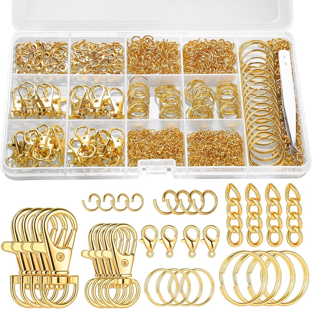 460PCS Keychain Making Kit: 35pcs swivel keychain clips, 45pcs key rings, 300pcs jump rings, 55pcs small lobster claw clasps, 25pcs tail extender chain,each key accessory comes in different sizes, and all products are packaged in a sturdy plastic box with compartments, making it a great choice for keychain-making, jewelry-making.